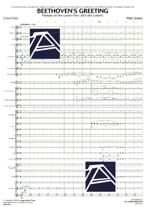 Additional info/contents The Band of Les Voltigeurs de Québec, an infantry regiment of the Canadian forces, commissioned two pieces from composer Philip Sparke for a concert and associated CD release; they were a Québec folk song suite Sounds of the Saint Lawrence, and this fantasy, based on the Beethoven canon: Freu dich des Lebens.
