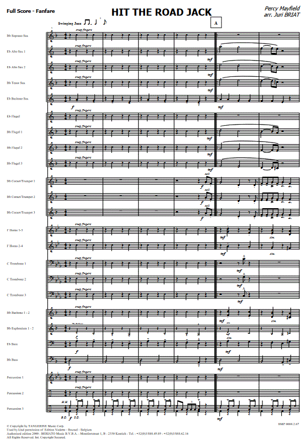 Hit the Road Jack - click here Hit the Road Jack (fanfare band), full score