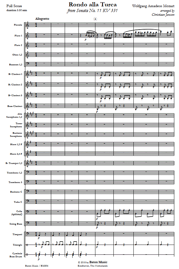 Rondo alla Turca (from 'Sonata #11') - click here Rondo alla Turca (from 'Sonata #11') (concert/wind band), full score and parts