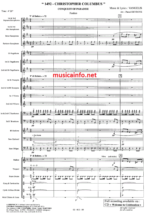 Conquest of Paradise - click here Conquest of Paradise (fanfare band; optional; mixed chorus; ]), full score