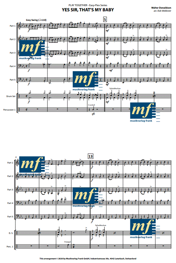 Additional info/contents "Yes Sir, That's My Baby" by Walter Donaldson is more than just a popular song of the 1920s; it is a testament to the cultural change and musical innovation of that time. Rob Webbster's arrangement not only promotes appreciation of the original, but also brings a breath of fresh air to the wind music scene. This connection between past and present shows how contemporary arrangements can reinterpret and preserve the timeless appeal of classical melodies.