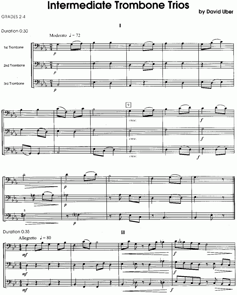 This exciting set of twenty original trios for student trombonists covers a wide range of musical styles, from waltzes to tarantellas and most everything in between. Range and technical demands are moderate, and the tonal quality of the music will appeal to developing players.