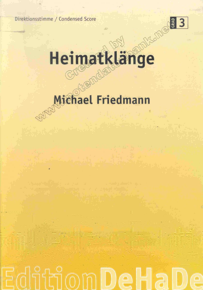 Additional info/contents 'Heimatklänge' ist ein typisch deutscher Strassen- und Konzertmarsch. In diesem Marsch will der Komponist Michael Friedmann seine Liebe zu seiner Heimat auf musikalische Weise zum Ausdruck bringen.