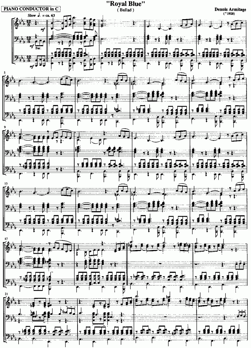 Royal Blue - click here Royal Blue (concert/wind band), Condensed Score and parts